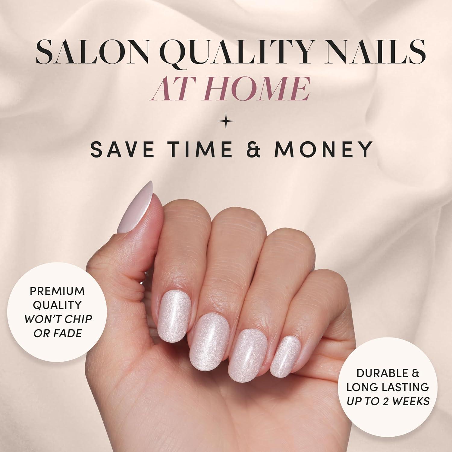 • Glamnetic Press-On Nails – Hailey | Super Strong Brush On Nail Glue & Nail Adhesive Tabs | Glossy, Semi-Transparent, Short Almond Nails, Reusable | 15 Sizes – 30 Nail Kit