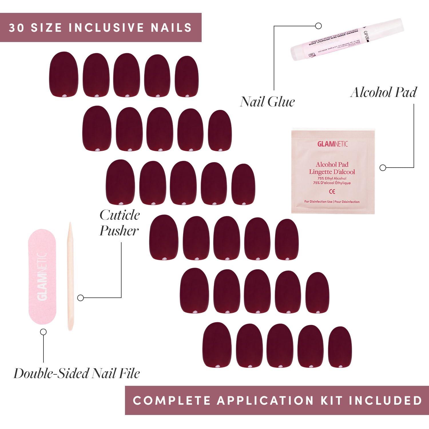 • Glamnetic Press-On Nails & Adhesive Nail Tabs – Berry Maroon | Opaque Dark Red Maroon Short Round False Nails, Reusable