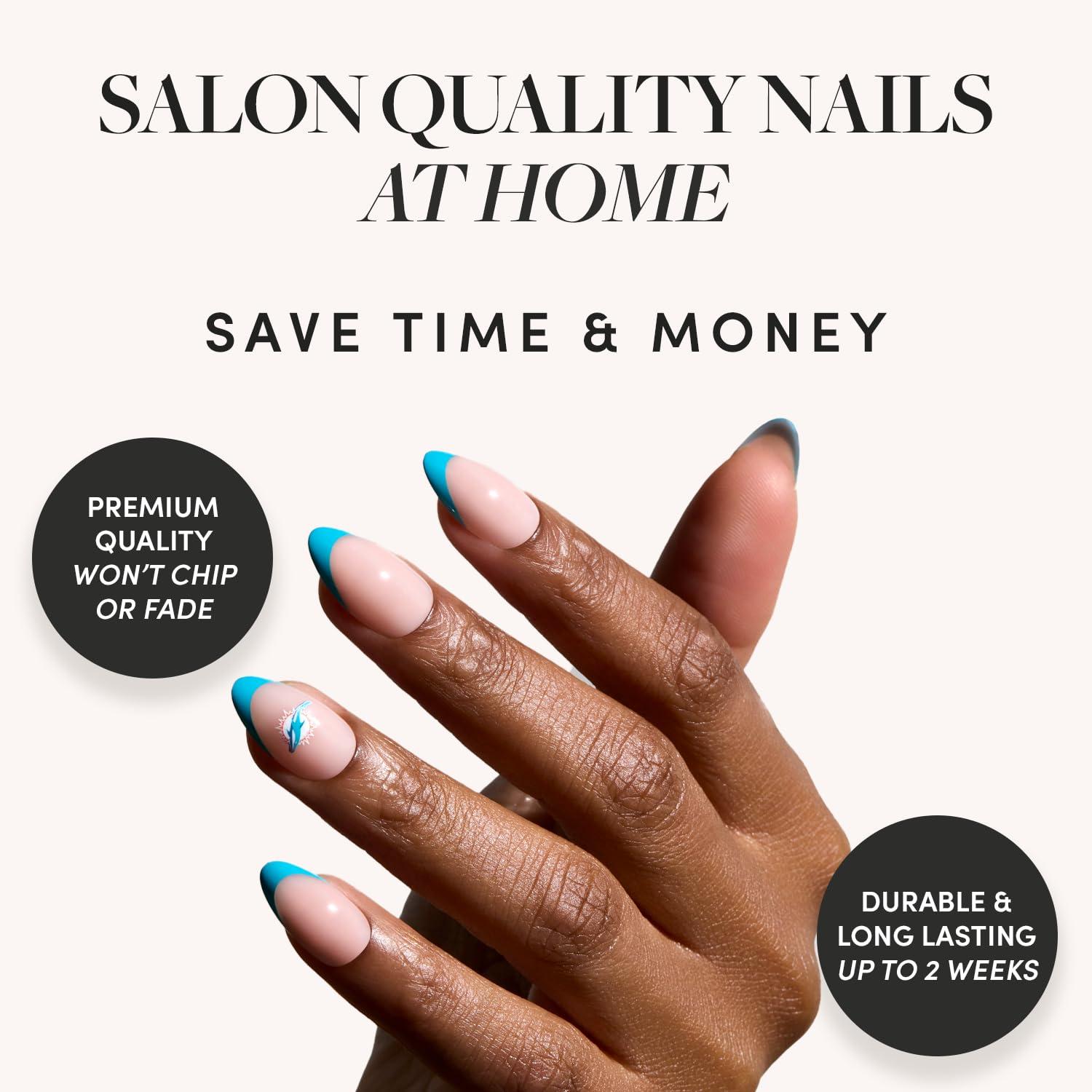 • Glamnetic x Fanatics Press On Nails – Philadelphia Eagles | Short Almond Fake Nails, NFL Eagles Green French Tips, Football Nails, Salon-Quality | 15 Sizes – 30 Nail Kit with Glue(Miami Dolphins)