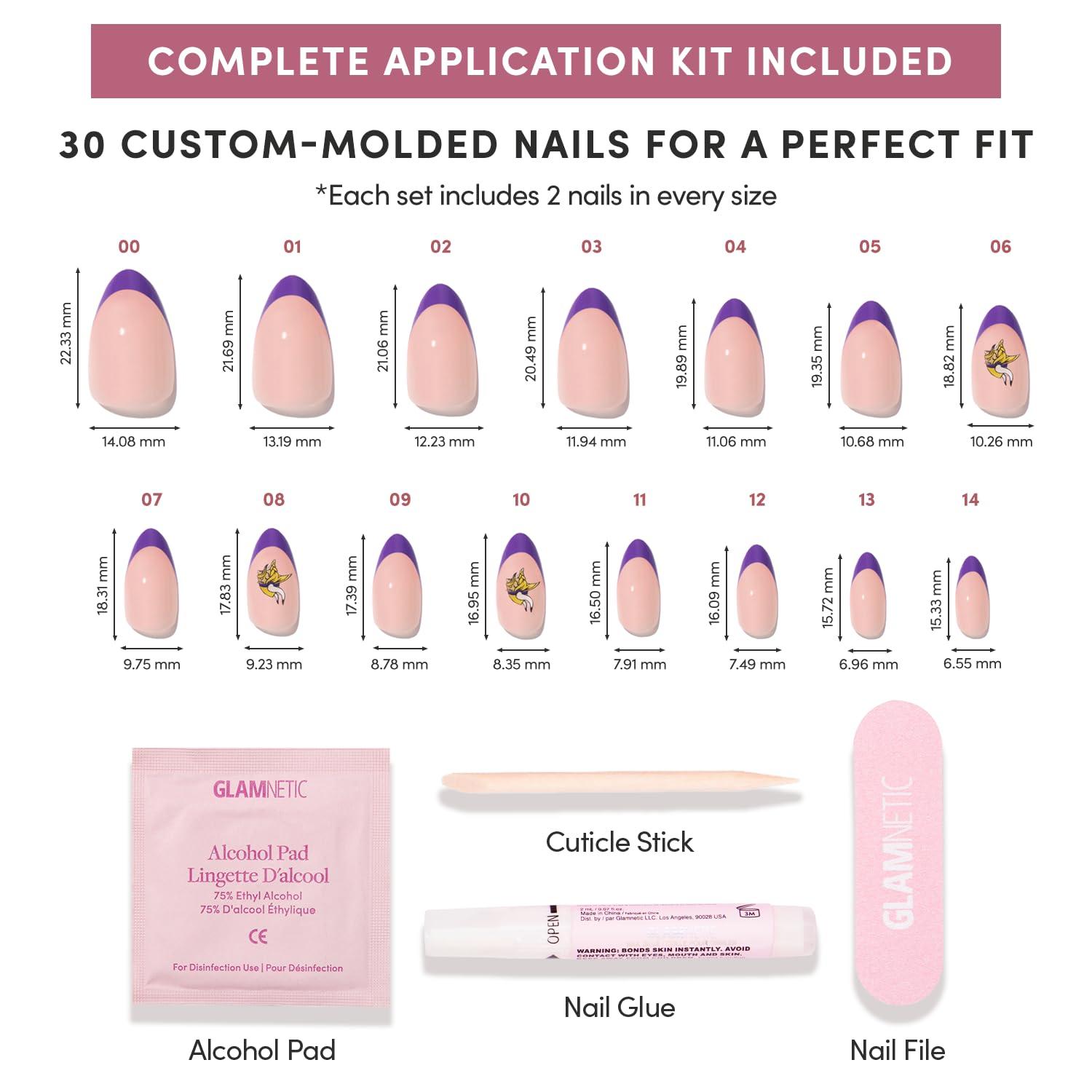 • Glamnetic x Fanatics Press On Nails – Philadelphia Eagles | Short Almond Fake Nails, NFL Eagles Green French Tips, Football Nails, Salon-Quality | 15 Sizes – 30 Nail Kit with Glue(Minnesota Vikings)