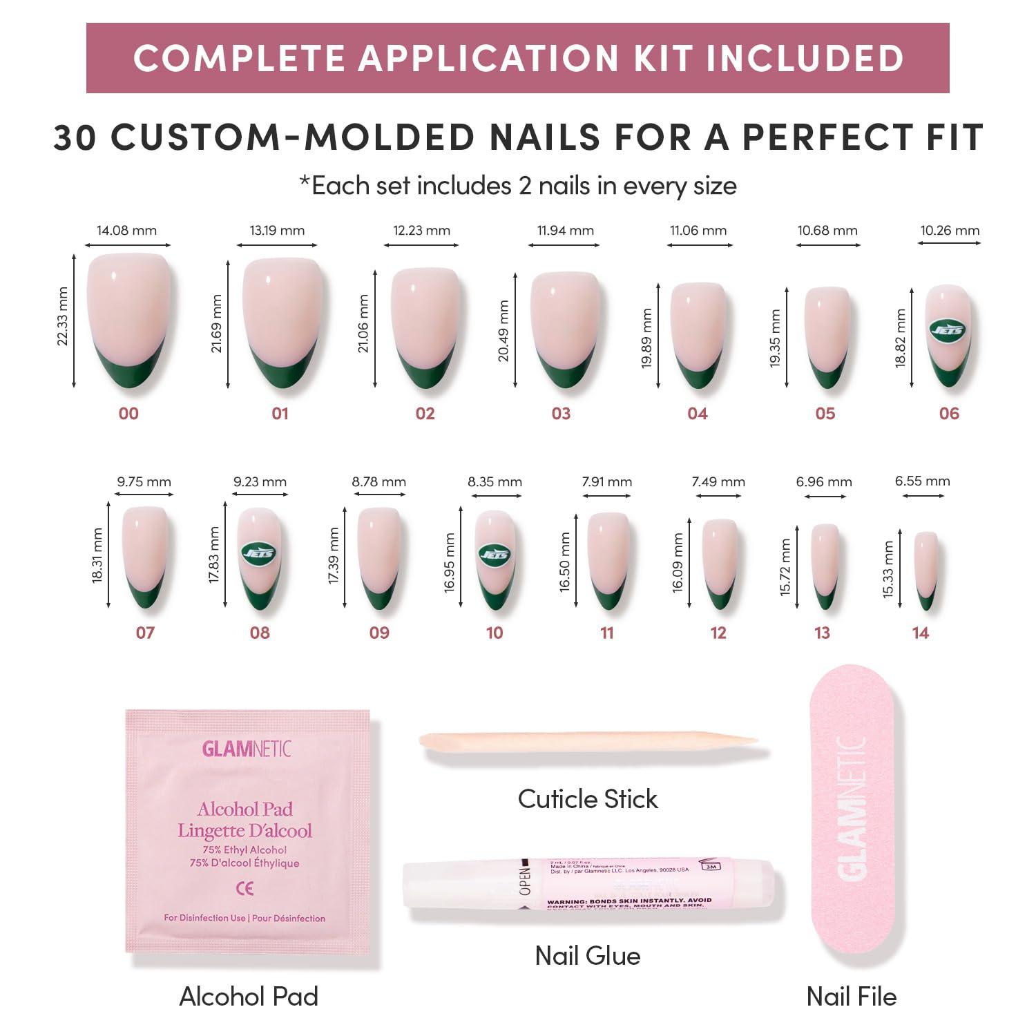 Glamnetic x Fanatics Press On Nails – Philadelphia Eagles | Short Almond Fake Nails, NFL Eagles Green French Tips, Football Nails, Salon-Quality | 15 Sizes – 30 Nail Kit with Glue(New York Jets)
