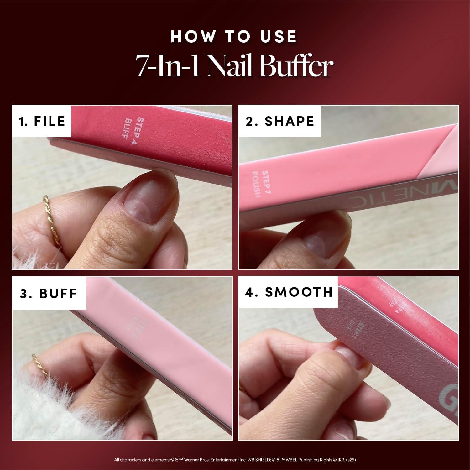 Glamnetic x Harry Potter™ 7-in-1 Nail Buffer | All-in-One, 7 Step Nail Buffing Block for Filing, Shaping, Smoothing & Polishing | Lightweight & Easy to Use | EVA & Sandpaper Nail File Buffer