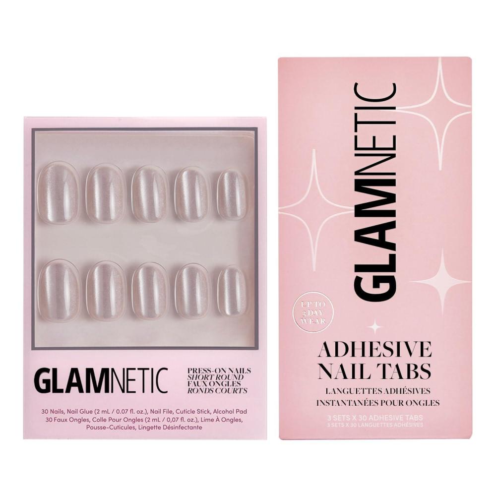 Glamnetic Press-On Nails & Adhesive Nail Tabs – Pure Intentions | Glossy, Iridescent Short Round Nails | 12 Sizes – 30 Nail Kit with Adhesive Tabs